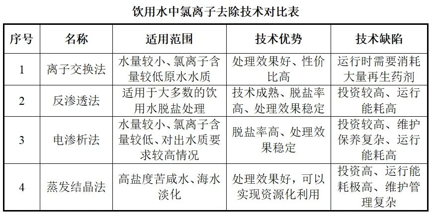飲用水中氯離子超標常用的處理方法主要有離子交換法、反滲透法、電滲析法、蒸發結晶法。華浦環保根據水質情況以及氯離子的去除機理,對各種處理技術進行了深入分析如下: